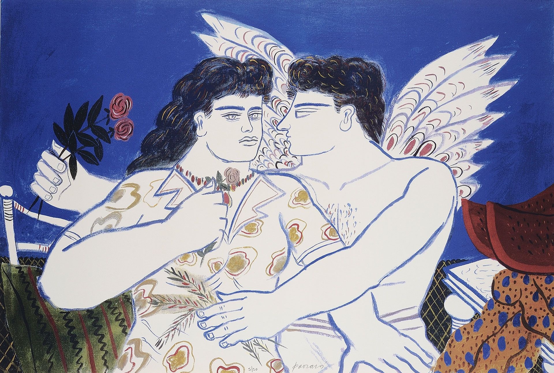Στα θέματά του κυριαρχεί η ανθρώπινη φιγούρα, η οποία αποδίδεται αρχικά με μια ηθελημένη απλοϊκότητα, αλλά με τον καιρό εξελίσσεται και αποκτά μια κυρίαρχη παρουσία στο χώρο. Σχεδιάζεται σχηματοποιημένα, με λιτά και καθαρά περιγράμματα, σε συνθέσεις επίπεδες με ελάχιστη φωτοσκίαση. Συχνά το χρώμα απλώνεται έντονο και εννιαίο σε όλη την επιφάνεια της μορφής, δίνοντας μια εντυπωσιακή μνημειακότητα στην εικόνα, η οποία λειτουργεί κυρίως ποιητικά και όχι ρεαλιστικά.