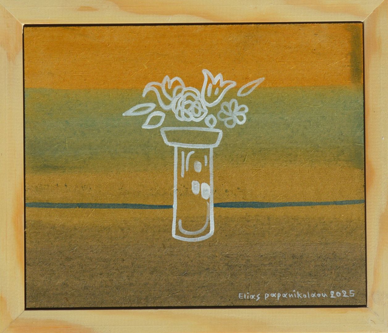 Μικτή τεχνική σε ξύλο με κορνίζα