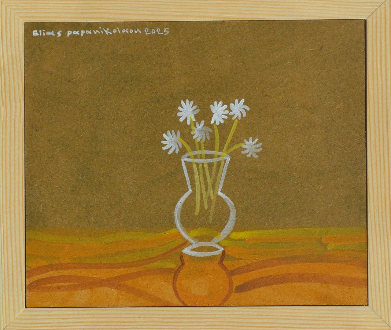 Μικτή τεχνική σε ξύλο με κορνίζα