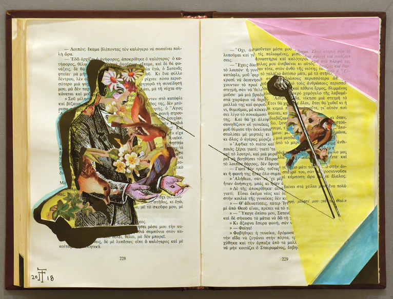 Κολλάζ, μαρκαδόρος, ακρυλικά χρώματα σε πλεξιγκλάς