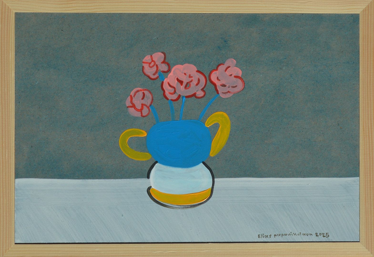 Mixed media on wood, framed