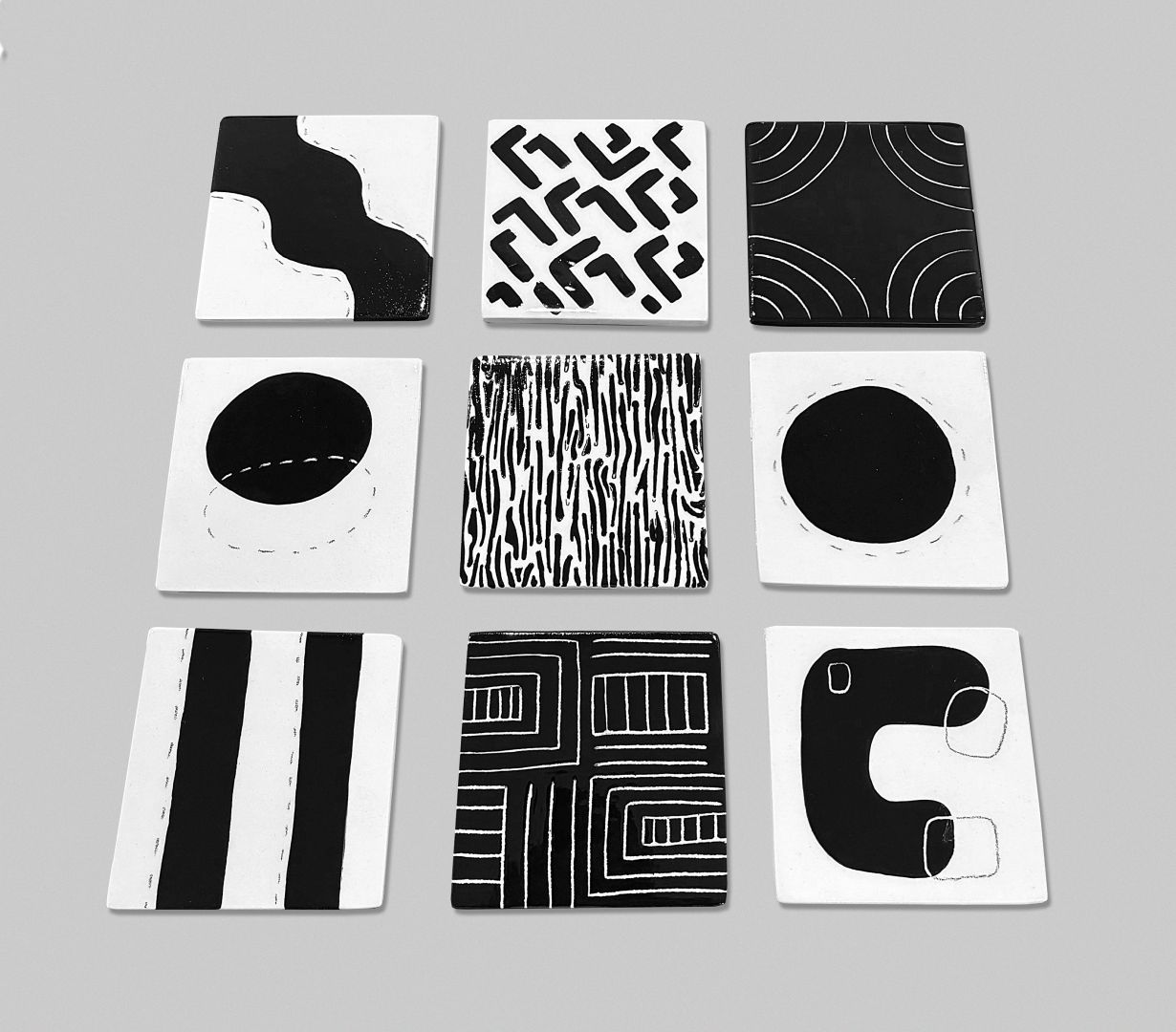 9 pieces sous-verre, handmade glazed ceramic