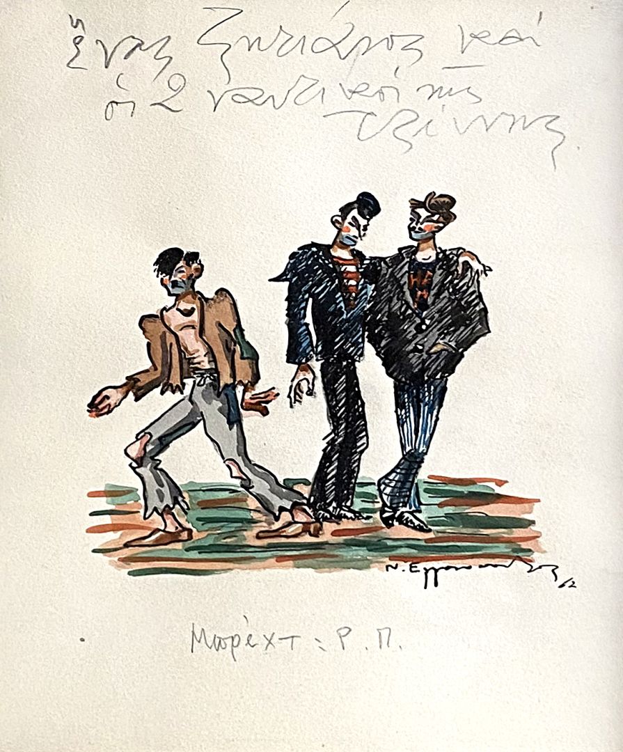 A Three Penny Opera by Brecht 1962, ink and watercolor on paper